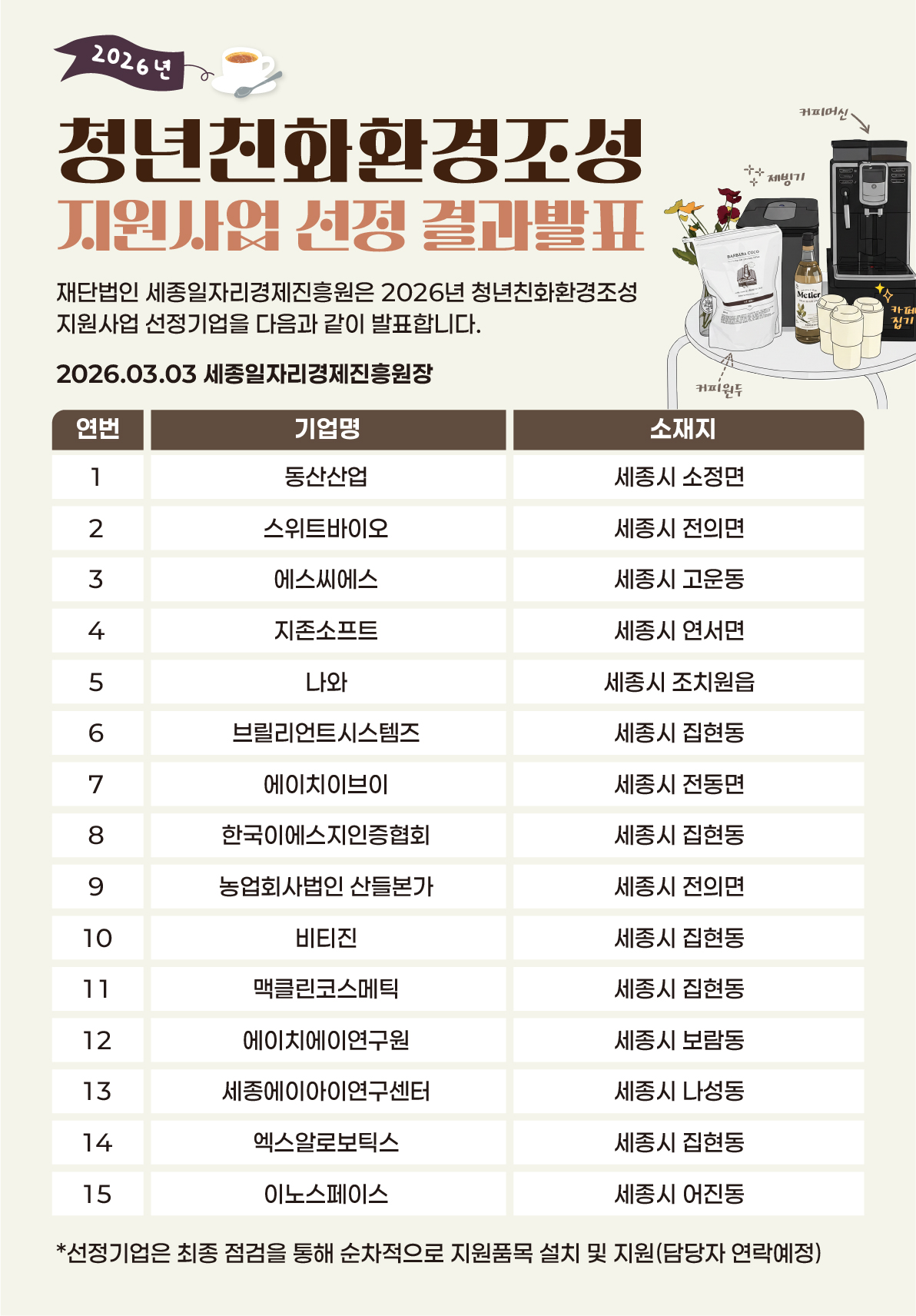 2026 청년친화환경조성 지원사업 선정결과 발표