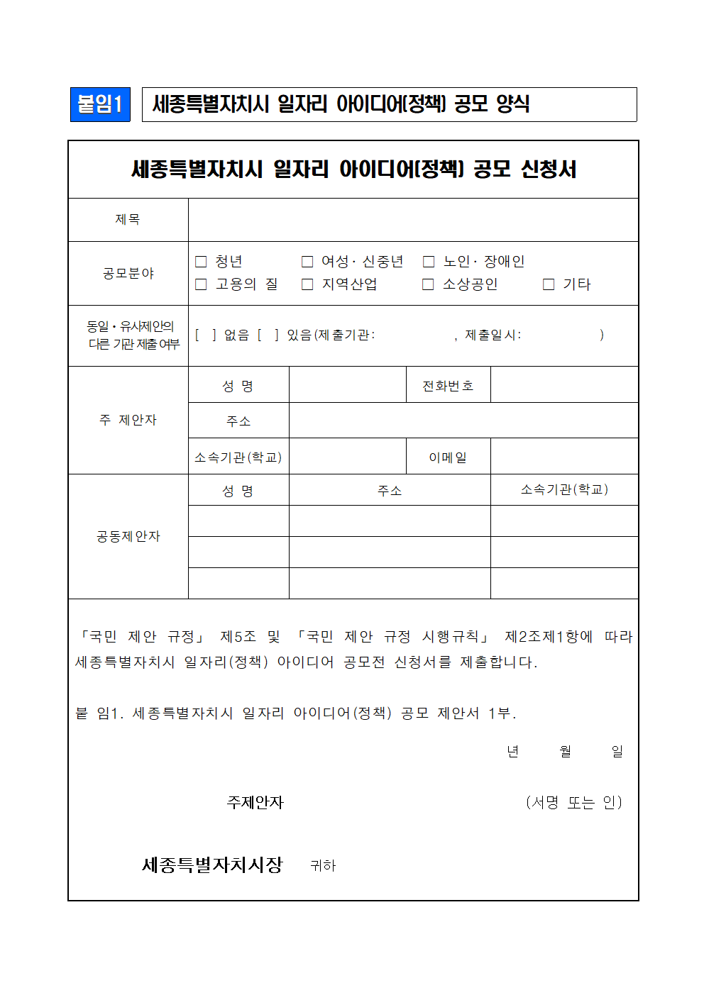 세종특별자치시 일자리 아이디어(정책) 공모전 공고