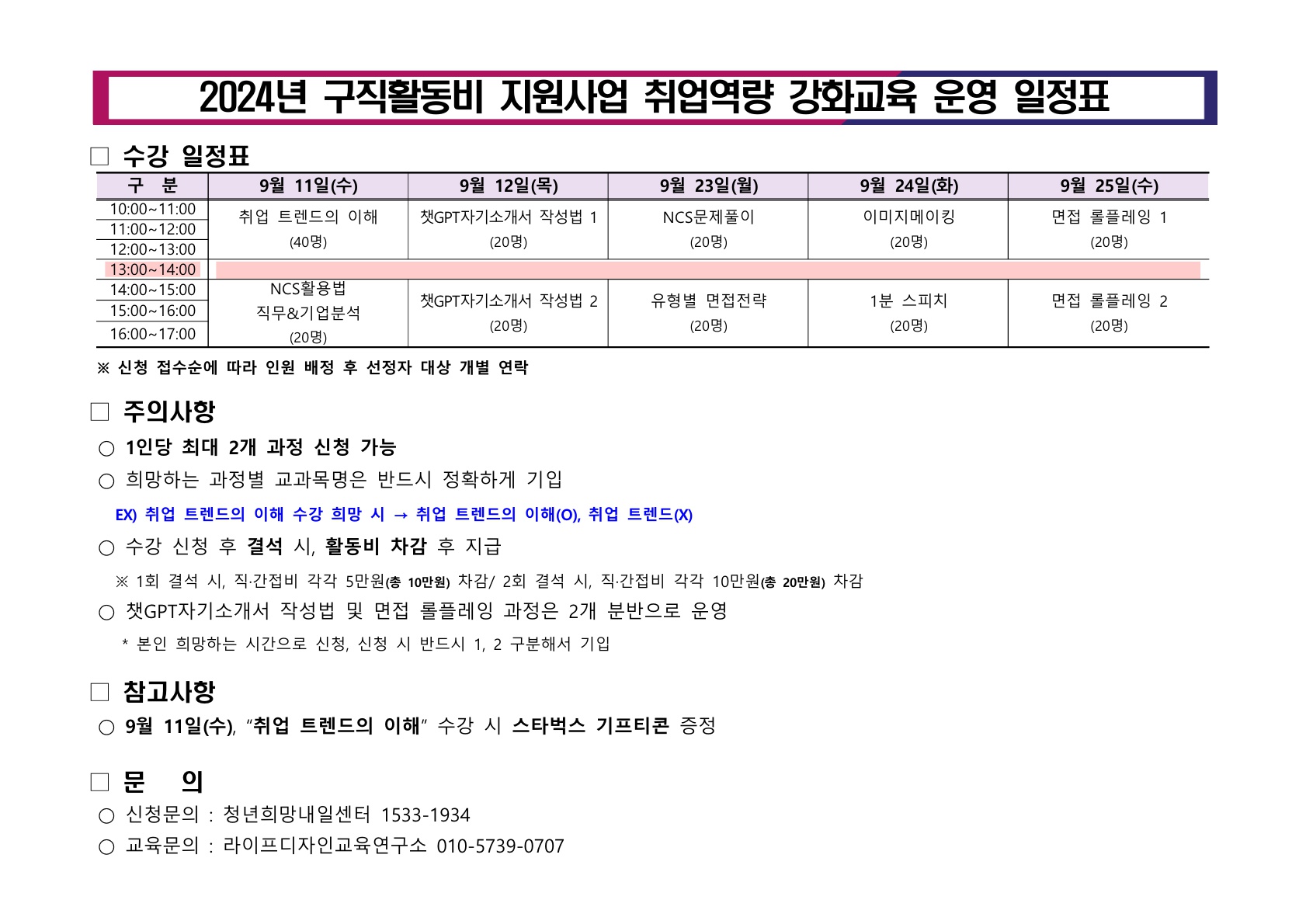 2024년 구직활동비 지원사업 취업역량 강화교육 운영