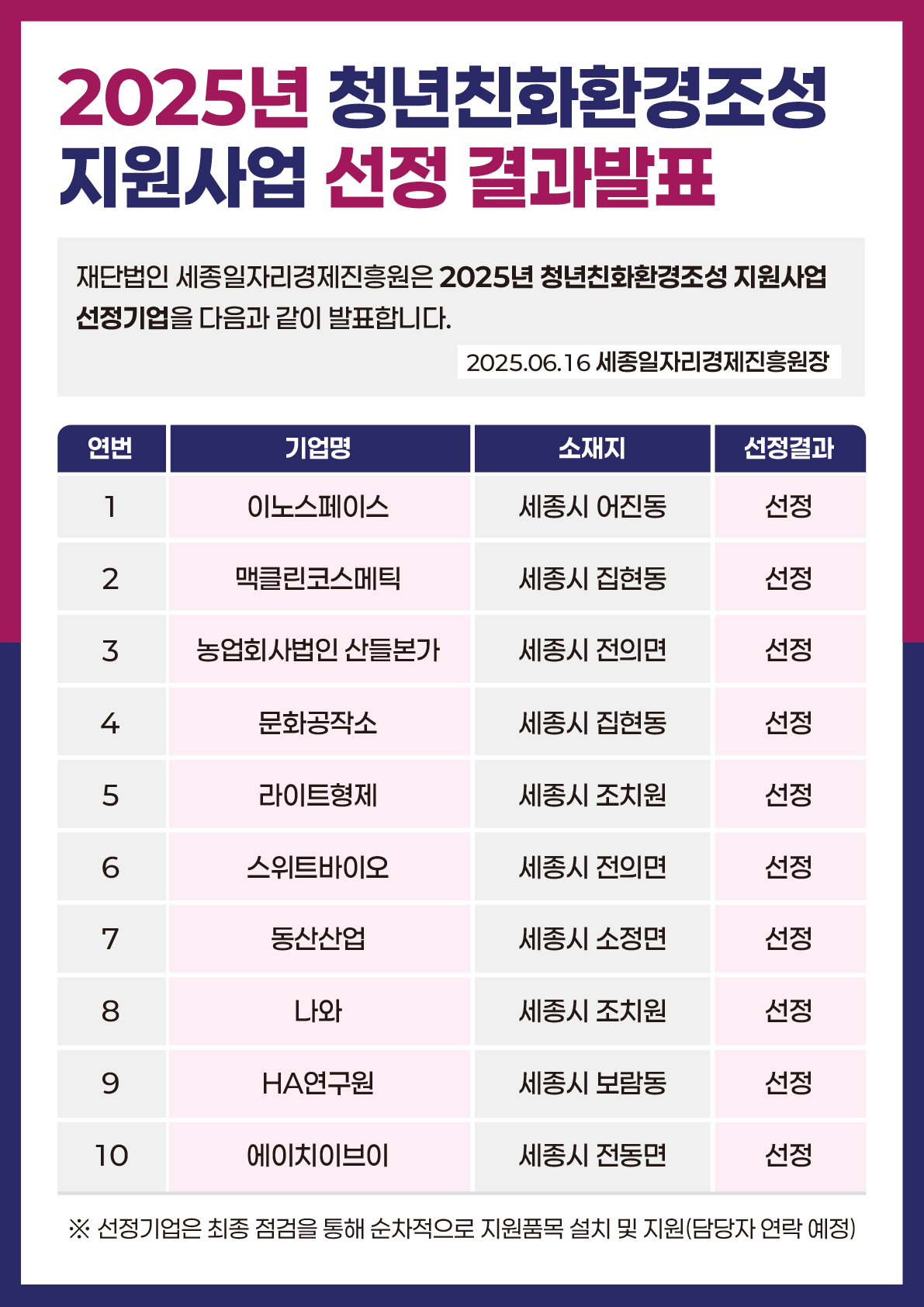 2025 청년친화환경조성 지원사업 선정결과 발표
