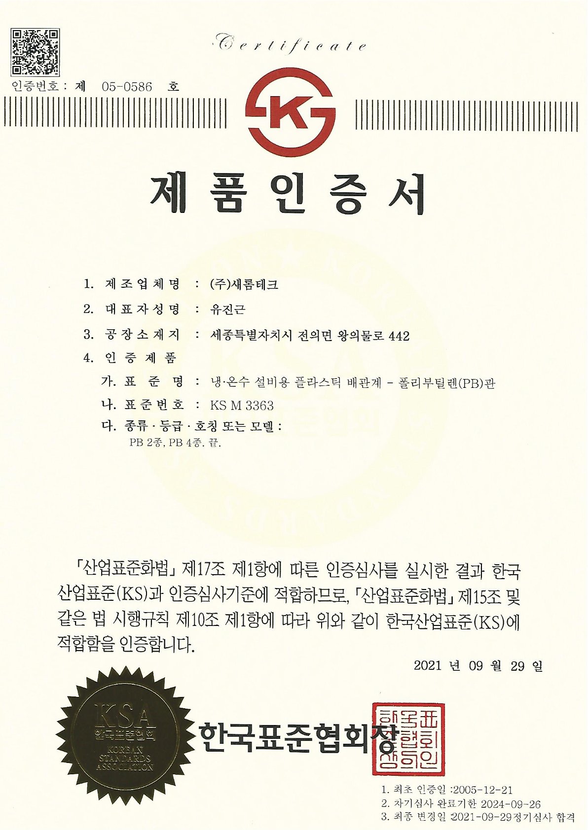 주요 인증서
