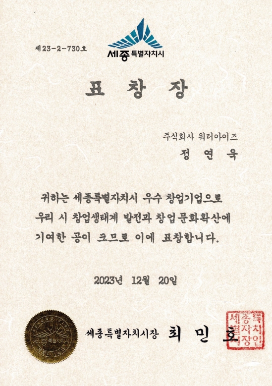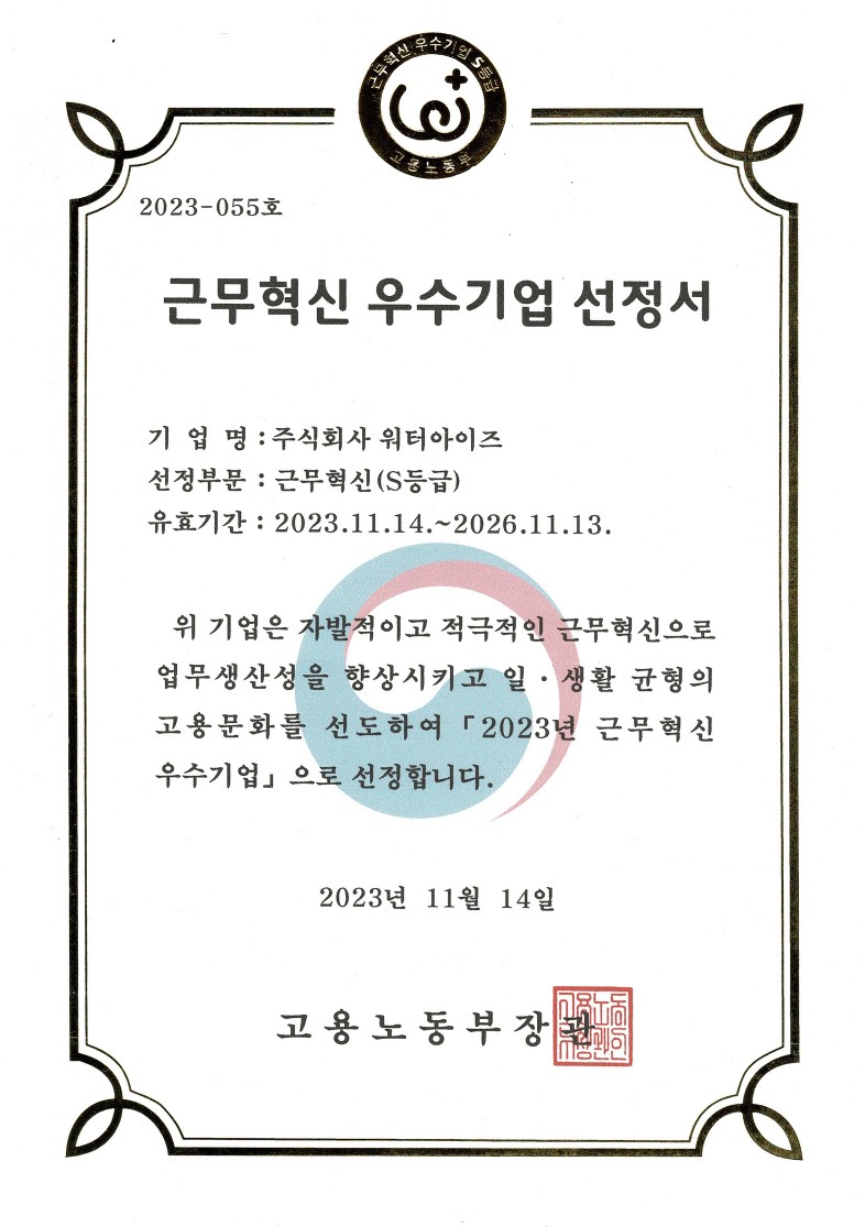 2023 근무혁신 우수기업 선정서 (주)워터아이즈